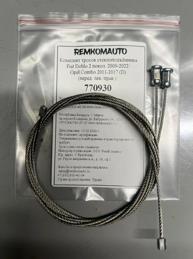 Комплект тросов ст-ка Fiat Doblo 2 покол. 2009-2022/Opel Combo 2011-2017 D(перед. лев./прав.) 770930
