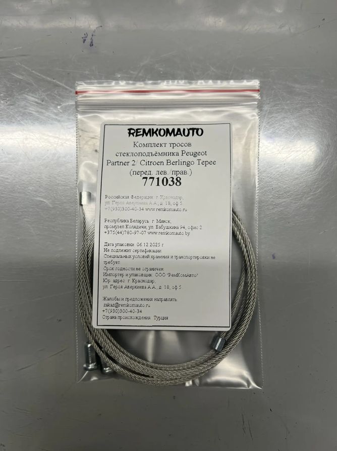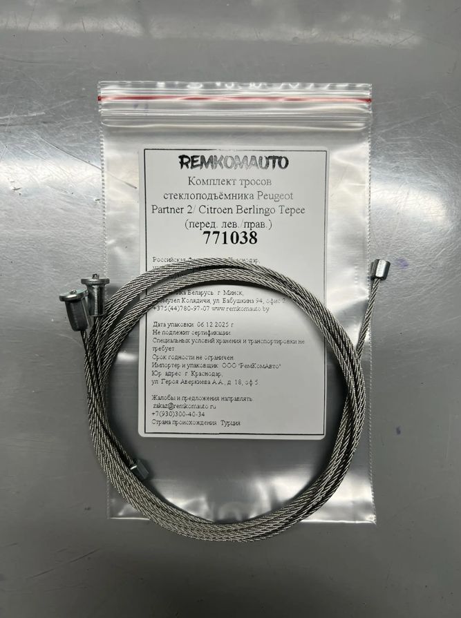 Комплект тросов стеклоподъёмника Peugeot Partner 2/Citroen Berlingo Tepee 2008- (перед.) 771038