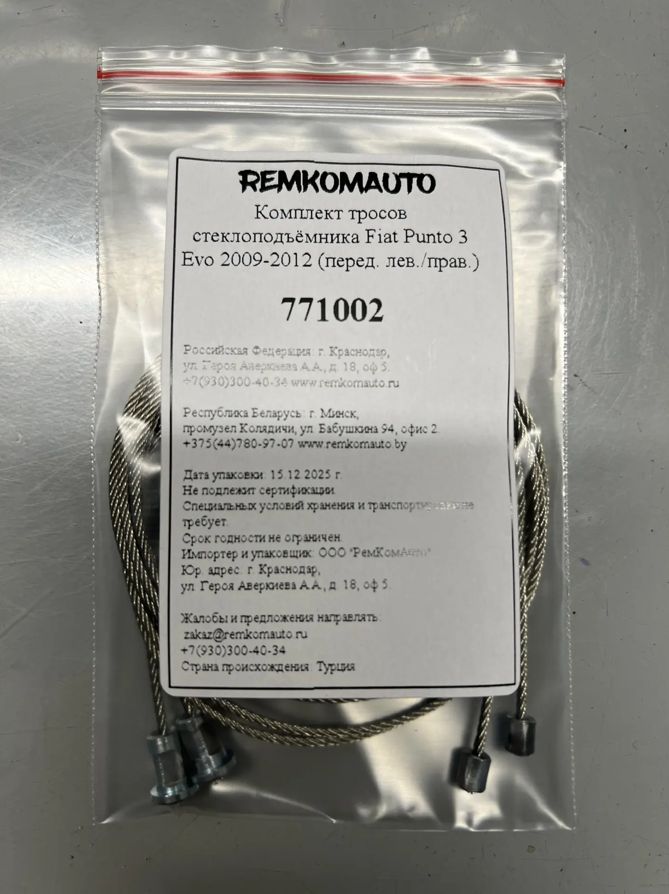 Комплект тросов стеклоподъёмника Fiat Punto 3 Evo 2009-2012 (перед. лев./прав.) 771002