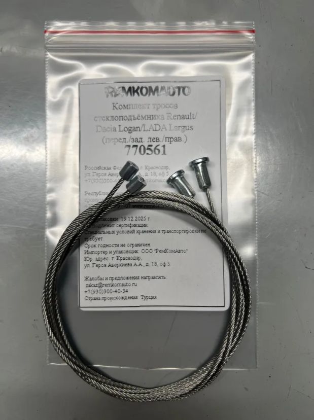 Комплект тросов стеклоподъёмника Renault/Dacia Logan/LADA Largus (перед./зад. лев./прав.) 770561