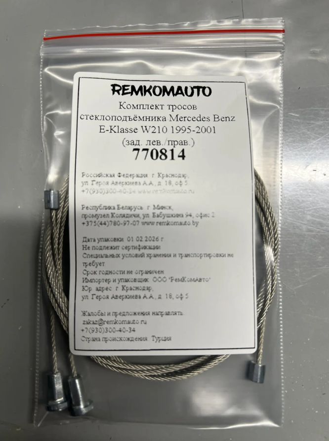 Комплект тросов стеклоподъёмника Mercedes Benz E-Klasse W210 1995-2001 (зад. лев./прав.) 770814.