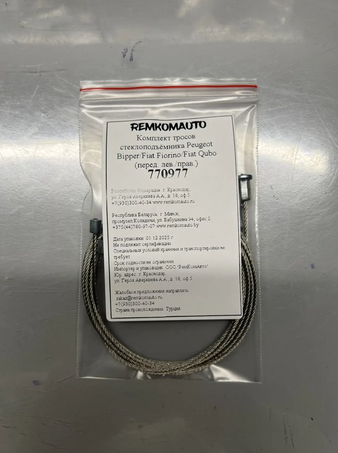 Комплект тросов стеклоподъёмника Peugeot Bipper/Fiat Fiorino/Fiat Qubo (перед. лев./прав.) 770977