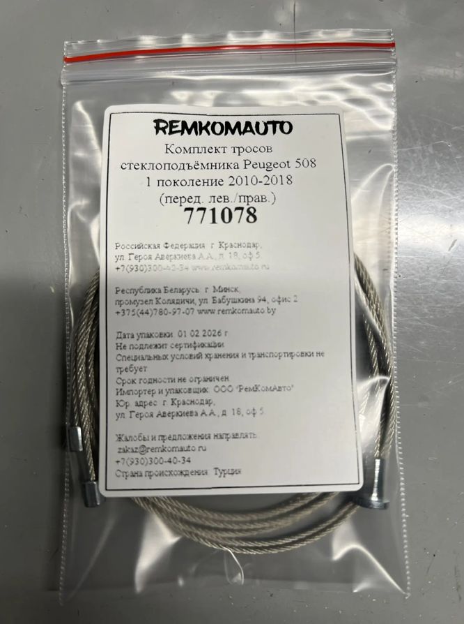 Комплект тросов стеклоподъёмника Peugeot 508 1 поколение 2010-2018 (перед. лев./прав.) 771078