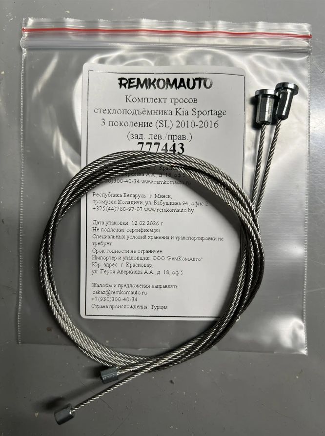 Комплект тросов стеклоподъемника Kia Sportage 3 поколение (SL) 2010-2014 (зад. лев./прав.) 777443