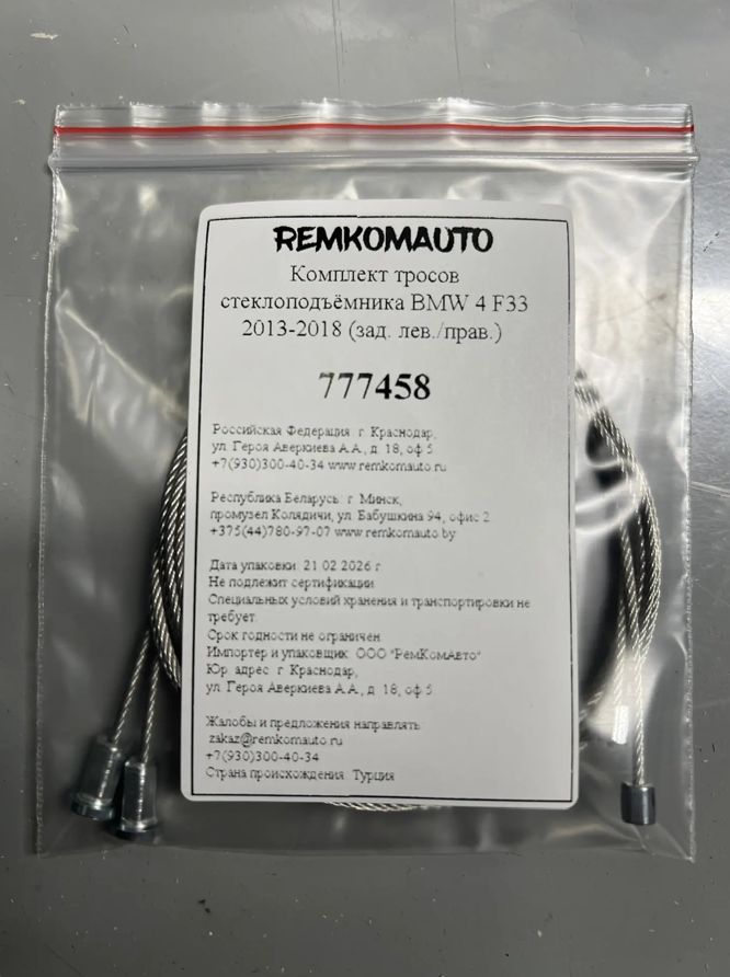 Комплект тросов стеклоподъёмника BMW 4-series 2013- (F32/F33/F36) (зад. лев./прав.) 777458