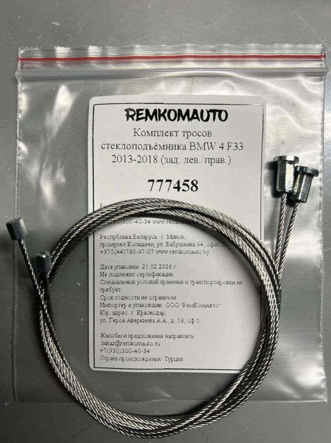 Комплект тросов стеклоподъёмника BMW 4 F33 2013-2018 (зад. лев./прав.) 777458.