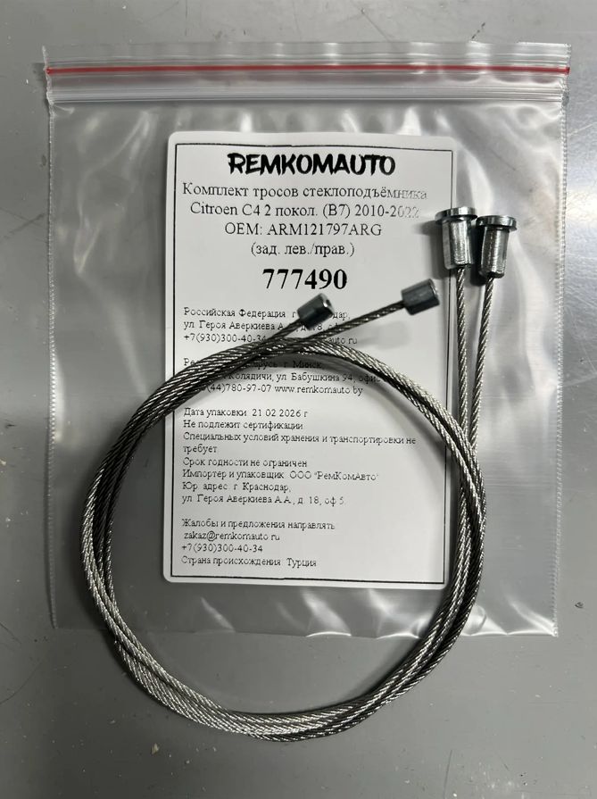 Комплект тросов ст-ка Citroen C4 2 покол. (B7) 2010-2022 ОЕМ: ARM121797ARG (зад.лев./прав.) 777490