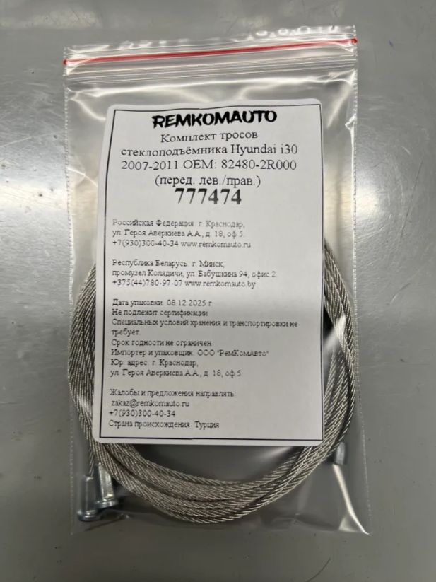 Комплект тросов стеклоподъёмника Hyundai i30 2007-2011 ОЕМ: 82480-2R000 (перед. лев./прав.) 777474