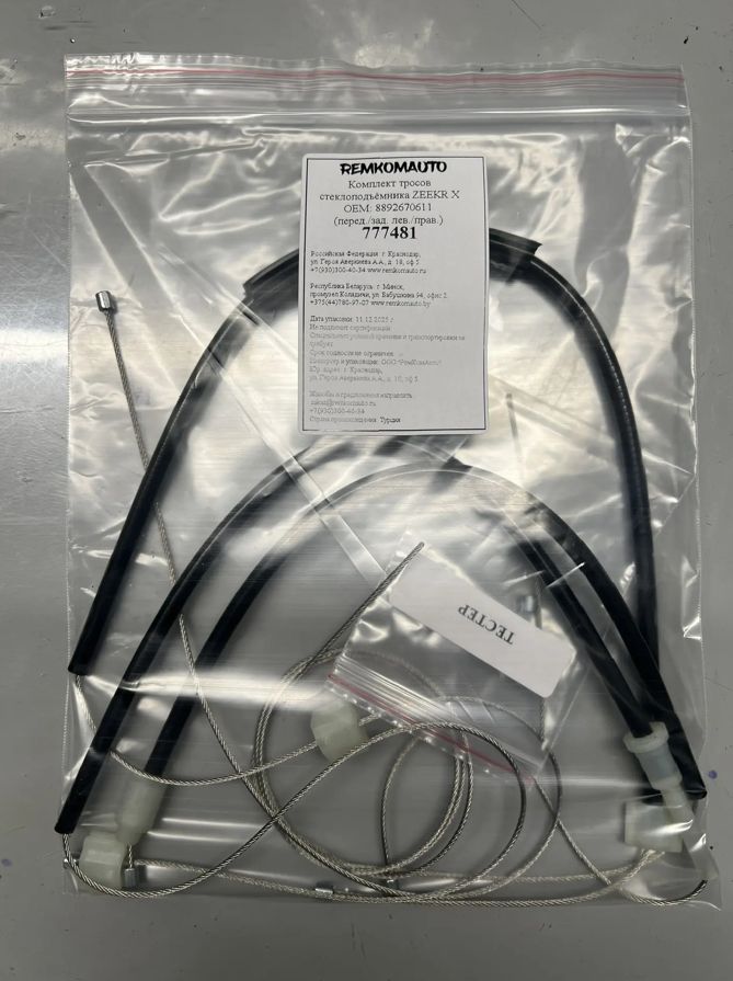 Комплект тросов стеклоподъёмника ZEEKR Х ОЕМ: 8892670611 (перед./зад. лев./прав.) 777481