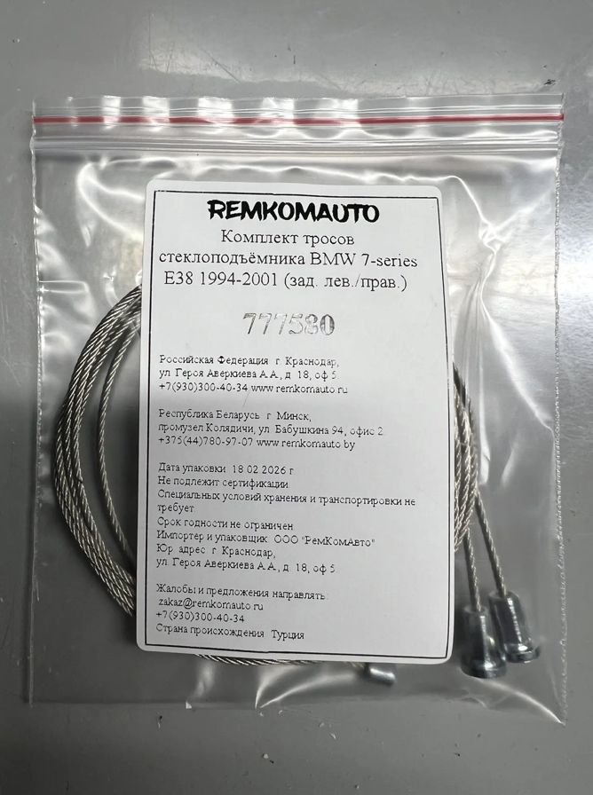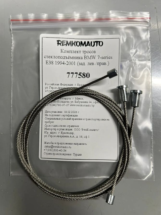 Комплект тросов стеклоподъёмника BMW 7-series E38 1994-2001 (зад. лев./прав.) 777580.