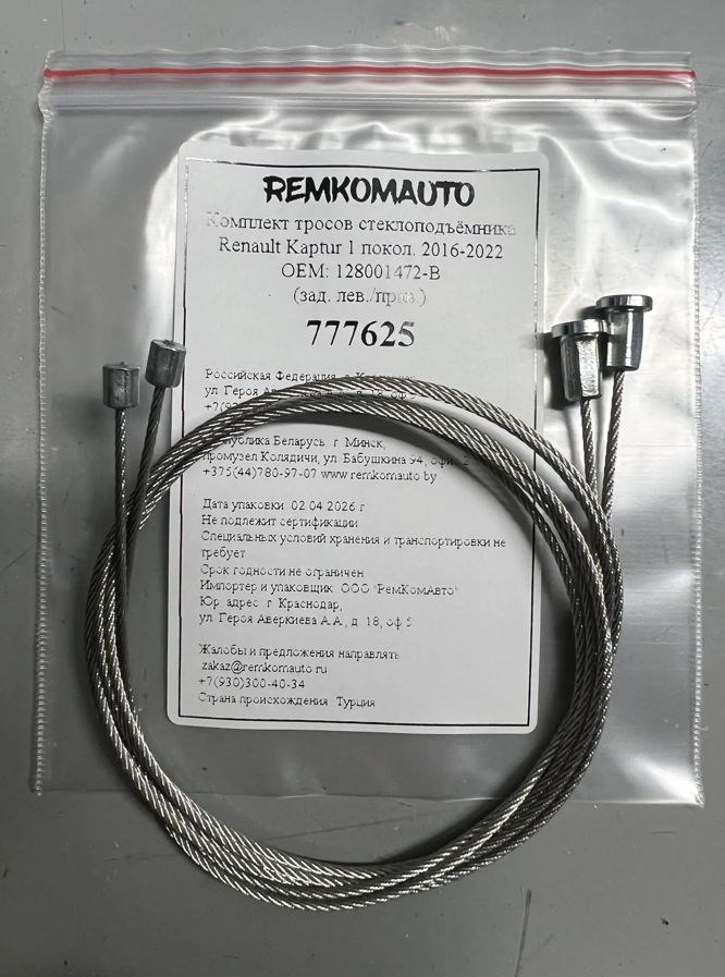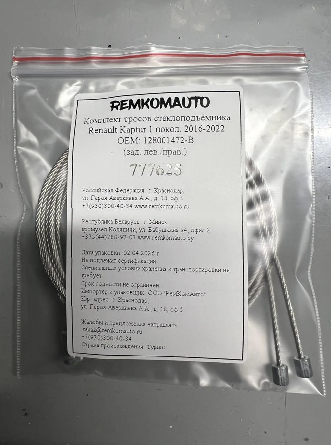 Комплект тросов стеклоподъёмника Renault Kaptur 1 покол. 2016-2022 ОЕМ: 128001472-B (зад.) 777625