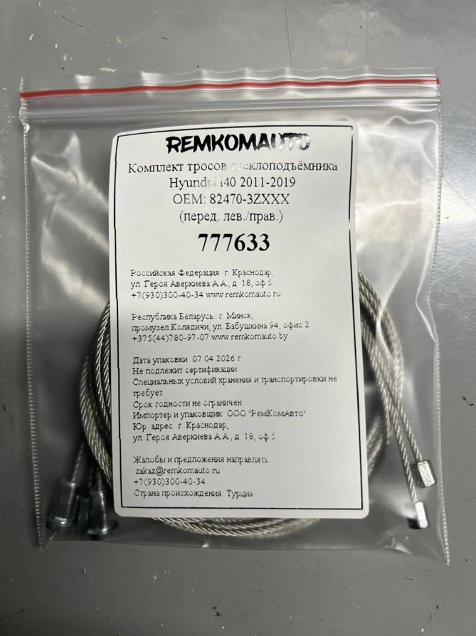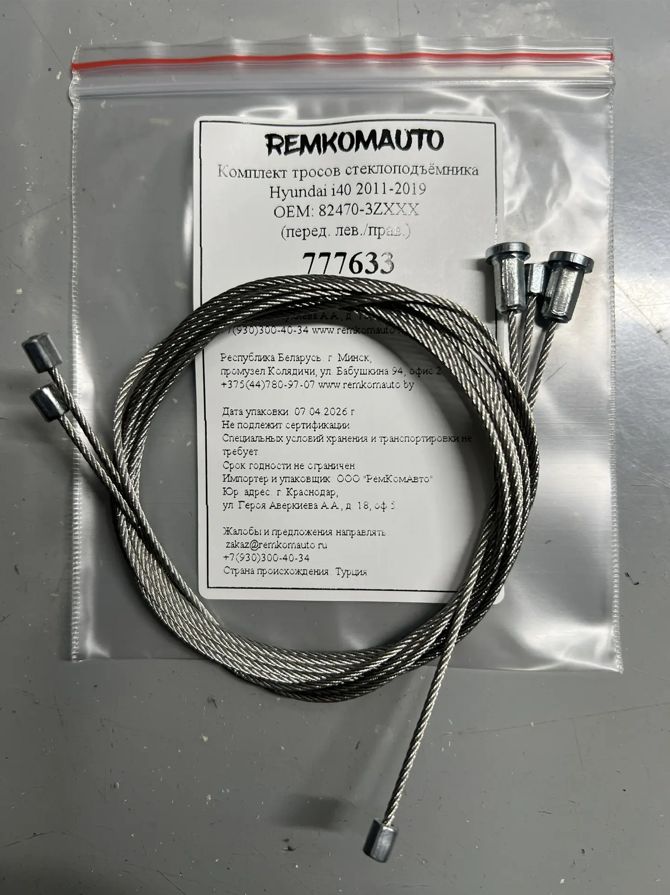 Комплект тросов стеклоподъёмника Hyundai i40 2011-2019 ОЕМ: 82470-3ZXXX (перед. лев./прав.) 777633