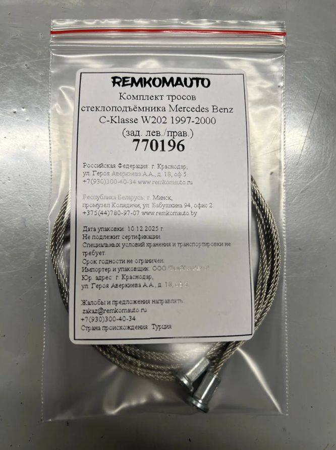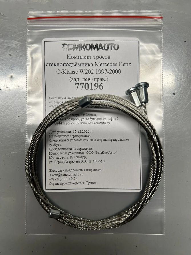 Комплект тросов стеклоподъёмника Mercedes Benz C-Klasse W202 1997-2000 (зад. лев./прав.) 770196