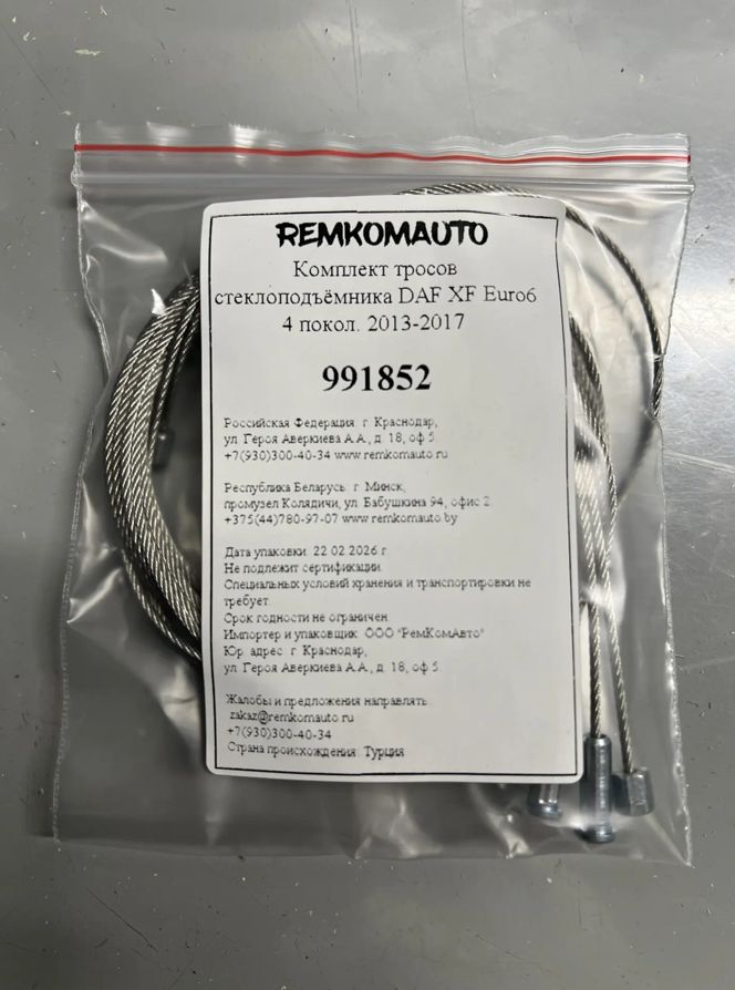 Комплект тросов стеклоподъёмника DAF XF Euro6 4 покол. 2013-2017 991852