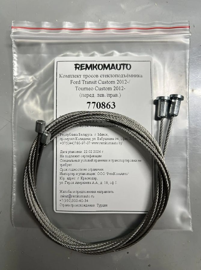 Комплект тросов ст-ка Ford Transit Custom 2012-/ Tourneo Custom 2012- (перед. лев./прав.) 770863