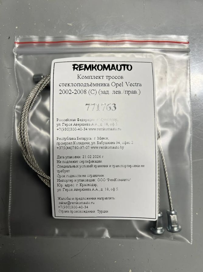 Комплект тросов стеклоподъёмника Opel Vectra 2002-2008 (C) (зад. лев./прав.) 771763