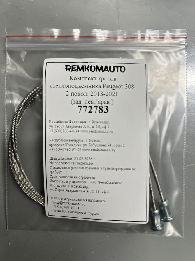 Комплект тросов стеклоподъёмника Peugeot 308 (зад. лев./прав.) 772783